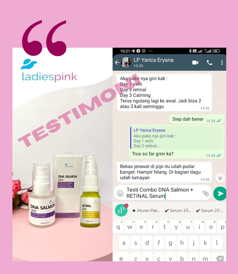 Segera dapatkan Serum Retinal Ladiespink dan rasakan perbedaannya. Berikan yang terbaik untuk kulit Anda dengan solusi skincare yang lebih efektif dan efisien. Cintai kulit Anda, lindungi sekarang juga! Mulailah langkah Anda menuju kulit yang sehat dan terlindungi dengan Serum Retinal Ladiespink. Produk ini bukan hanya sekedar serum biasa, tapi adalah pelindung kulit Anda dari segala ancaman sehari-hari. Ayo, tunjukkan pada dunia kulit cantik dan sehat yang Anda miliki!